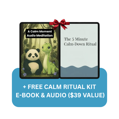 The Calm Ritual Kit includes a 5-minute audio and guided e-book that teach your body how to slow down, breathe, and feel safe again. A simple ritual to help you (or your little one) unwind at any time when you feel overwhelmed.